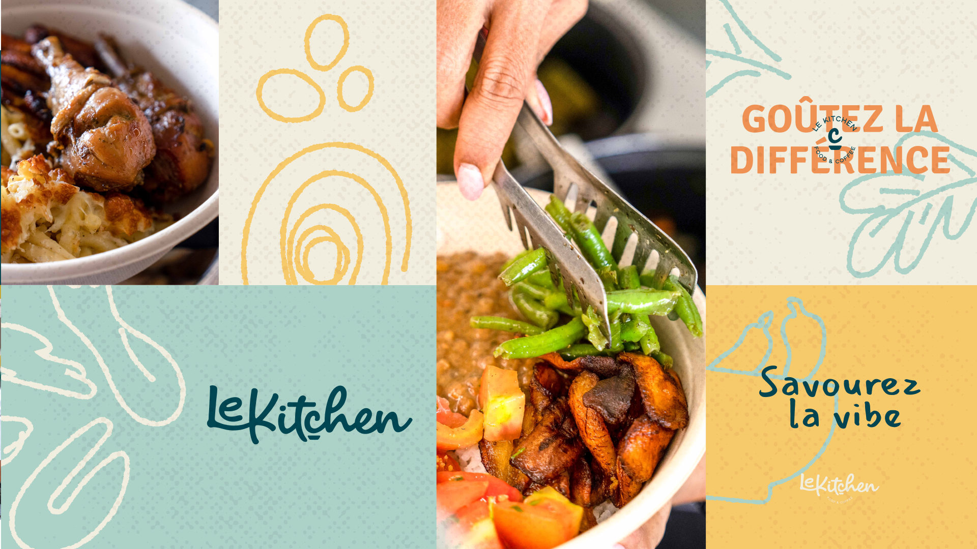 Le Kitchen is a restaurant in French Guiana with a hybrid concept, offering two contrasting services. During lunchtime, it operates as a counter service allowing customers to create customizable bowls with various bases, proteins, and sides.