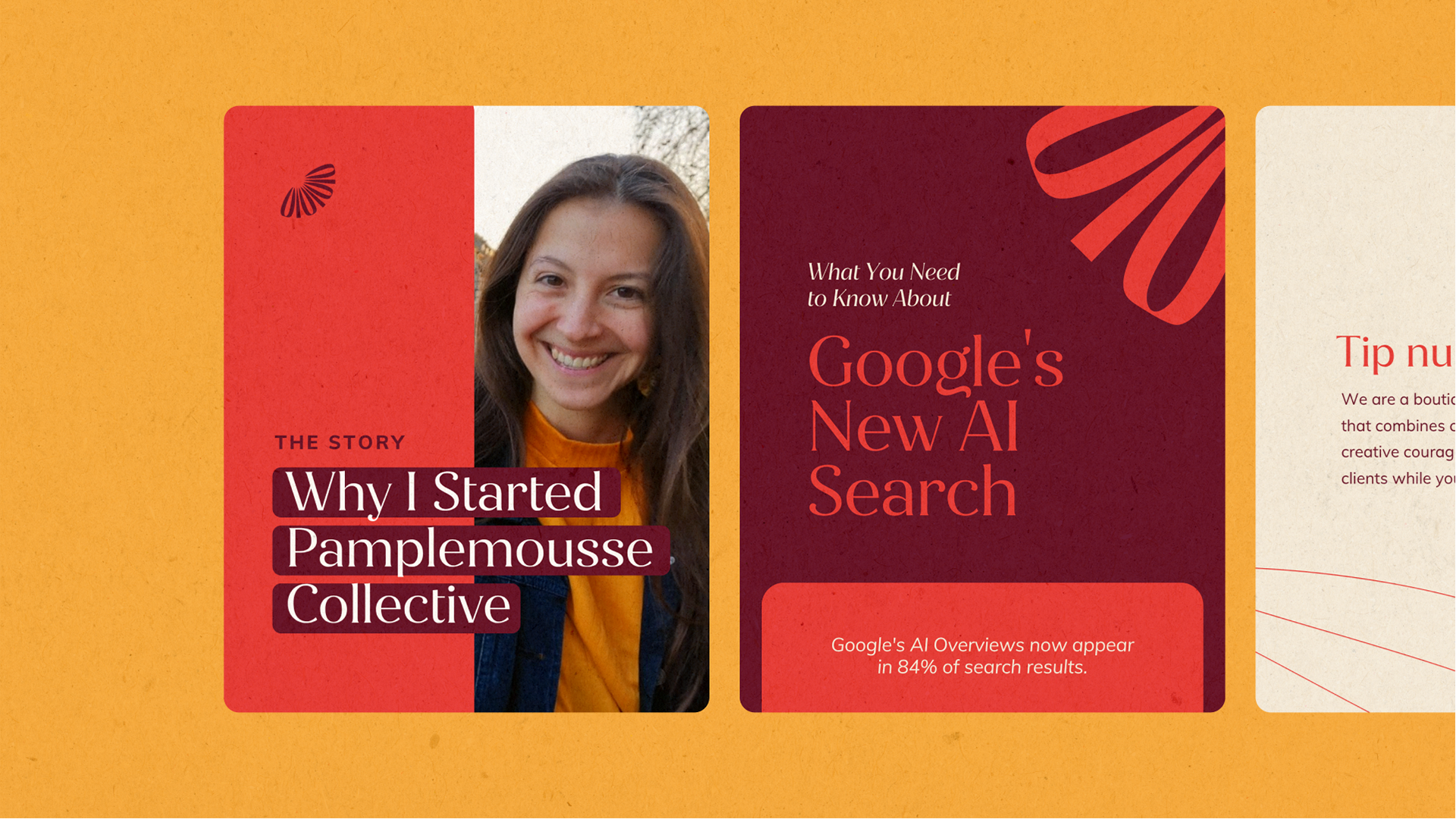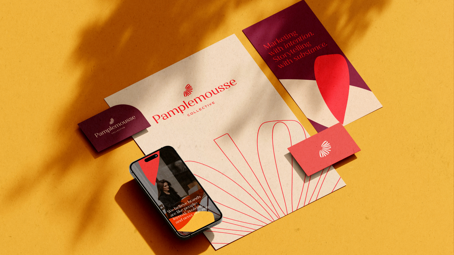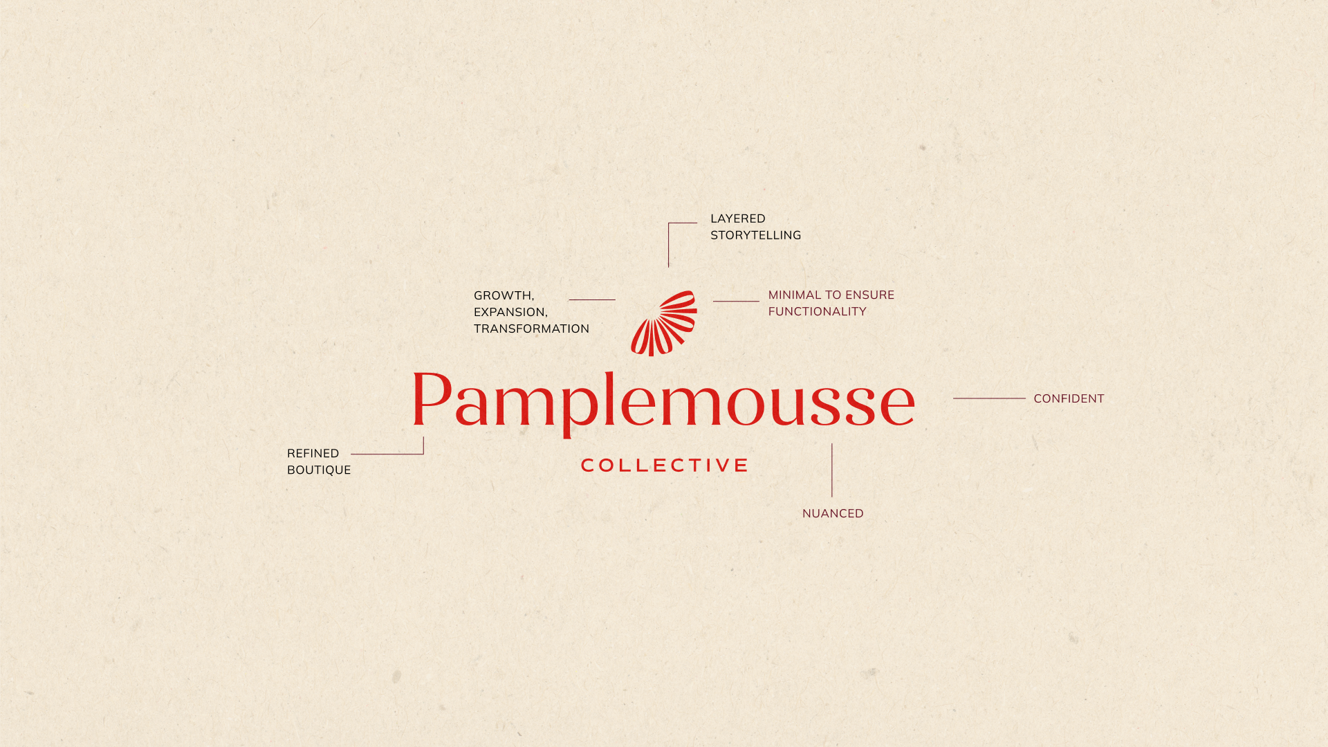 Pamplemousse Collective is a boutique agency that bridges cultures and voices. Its identity reflects layered storytelling, refined confidence, and a touch of bold creativity: a brand that feels human, approachable, and specialized.