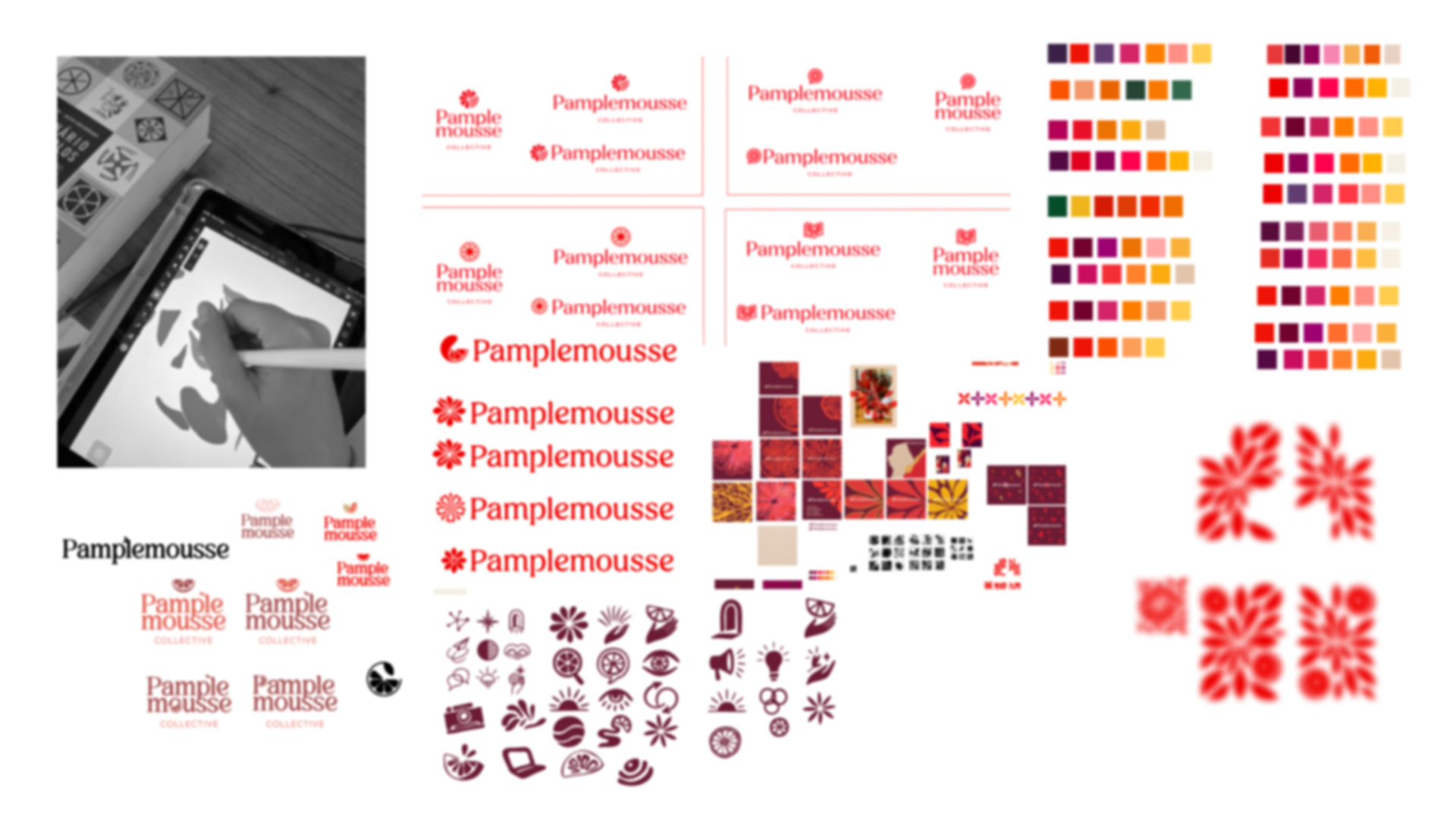 They serve as a flexible visual system that reinforces the identity across applications, dynamic over photography, textured in backgrounds, and unique as standalone graphics, giving Pamplemousse a ownable language that elevates it beyond the literal logo.